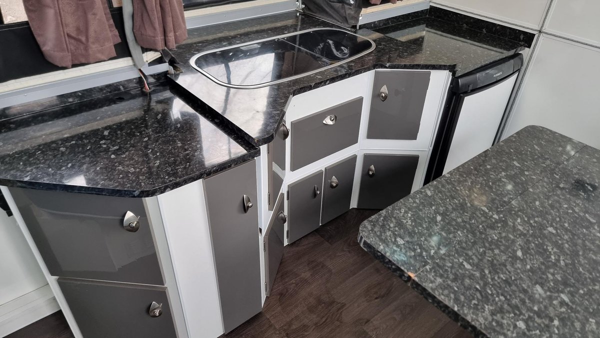 - Fridge: Dometic 3-Way 90ltr